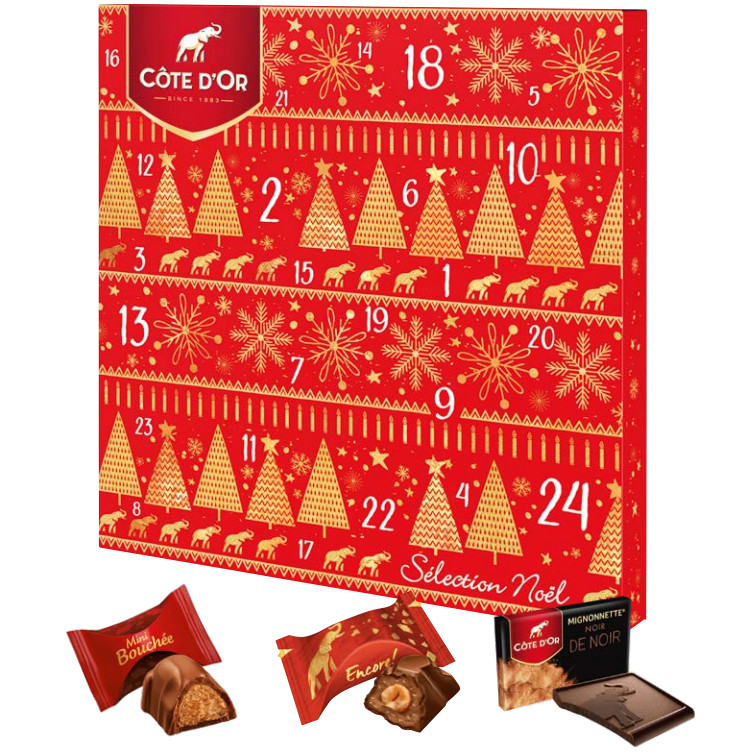 Cote D'Or Advent Calendar. Un assortiments de 24 surprises. Let yourself be enchanted by this dior advent calendar, representing the historic dior boutique.