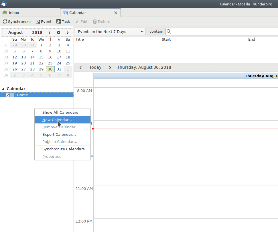 The first thing to do is open the thunderbird email client and then click the calendar icon near the top right of the app window.